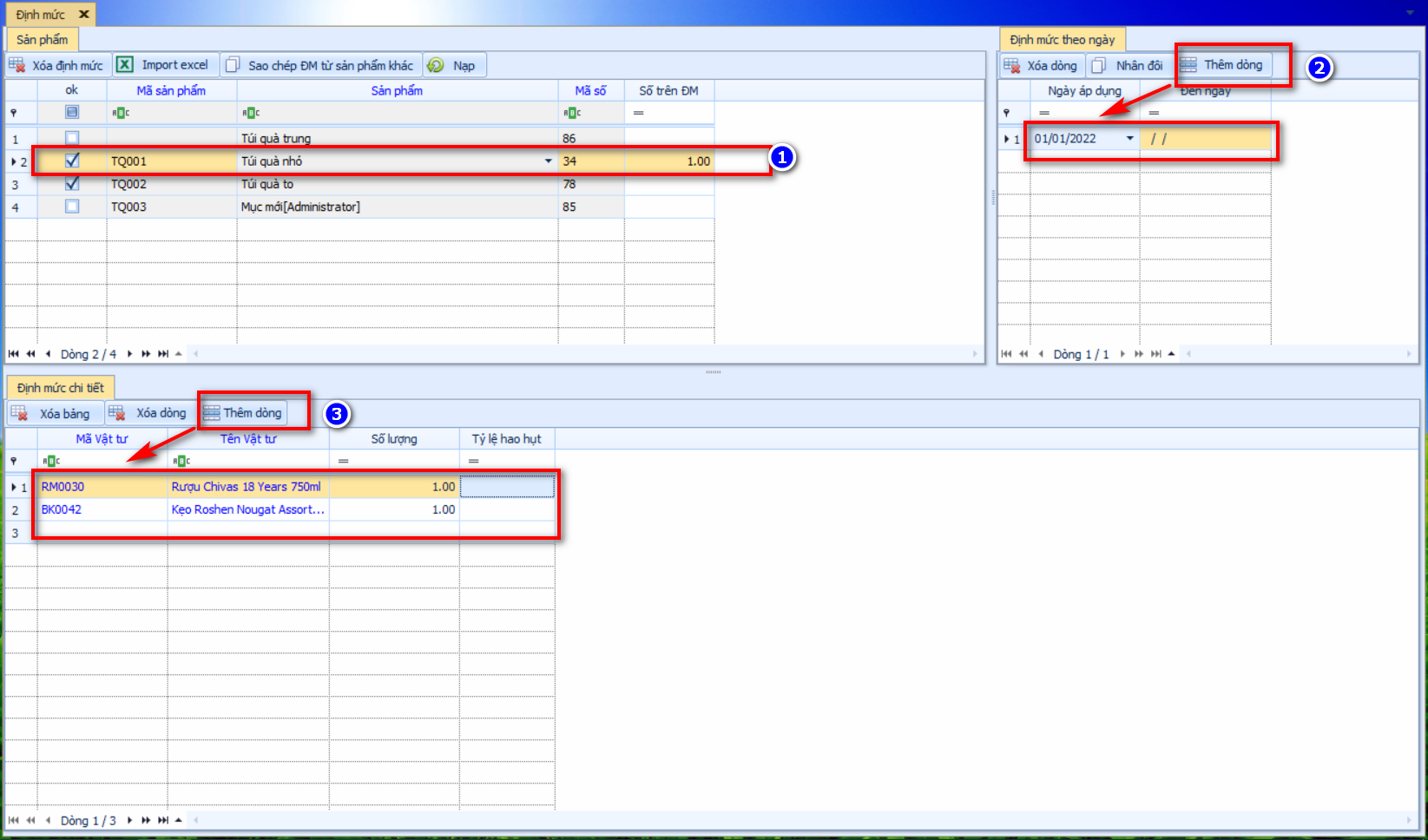 ### B2: Khai báo định mức sản xuất cho sản phẩm